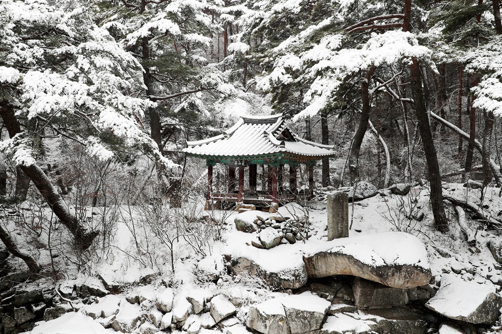 - 한줄 팁: 해인사 초입의 계곡 다리에서 사찰로 올라가는 길목은 눈 덮인 나무와 사찰이 어우러져 환상적인 풍경을 제공합니다.